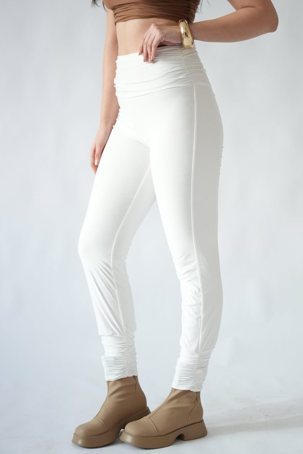 Two layered stretchy material, with ruched sides model is size s wearing pants size xs