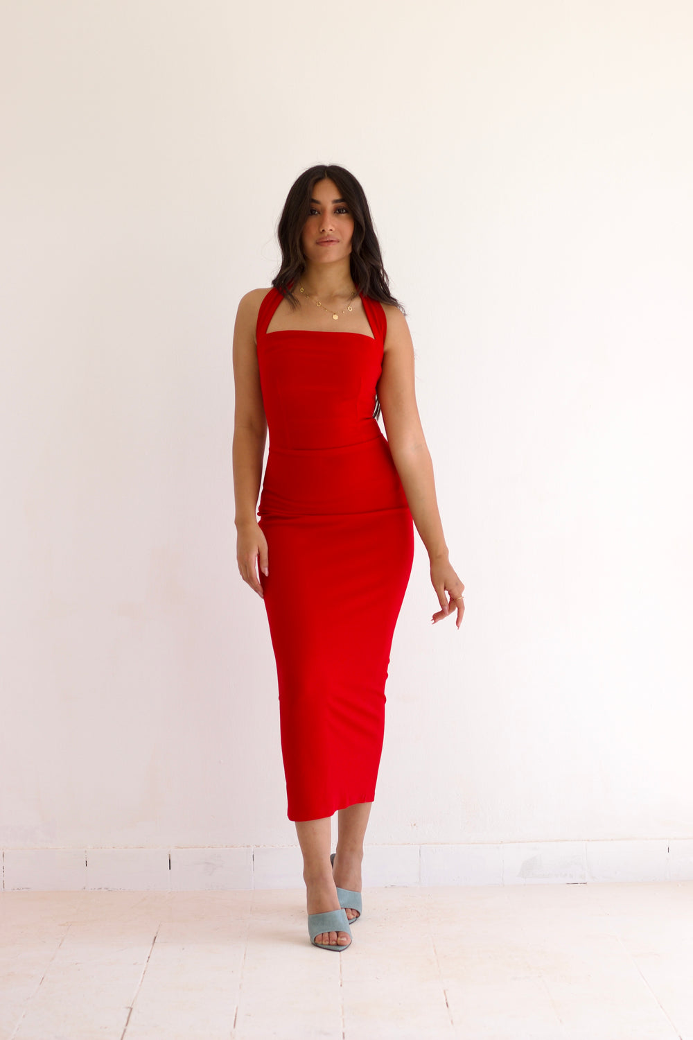 Marylin Dress — a bestselling sculpting piece designed to enhance curves with an elegant hourglass illusion. Stretch fabric with a refined sandy exterior and smooth inner feel delivers structure, comfort, and polished sophistication — effortlessly chic for any occasion.