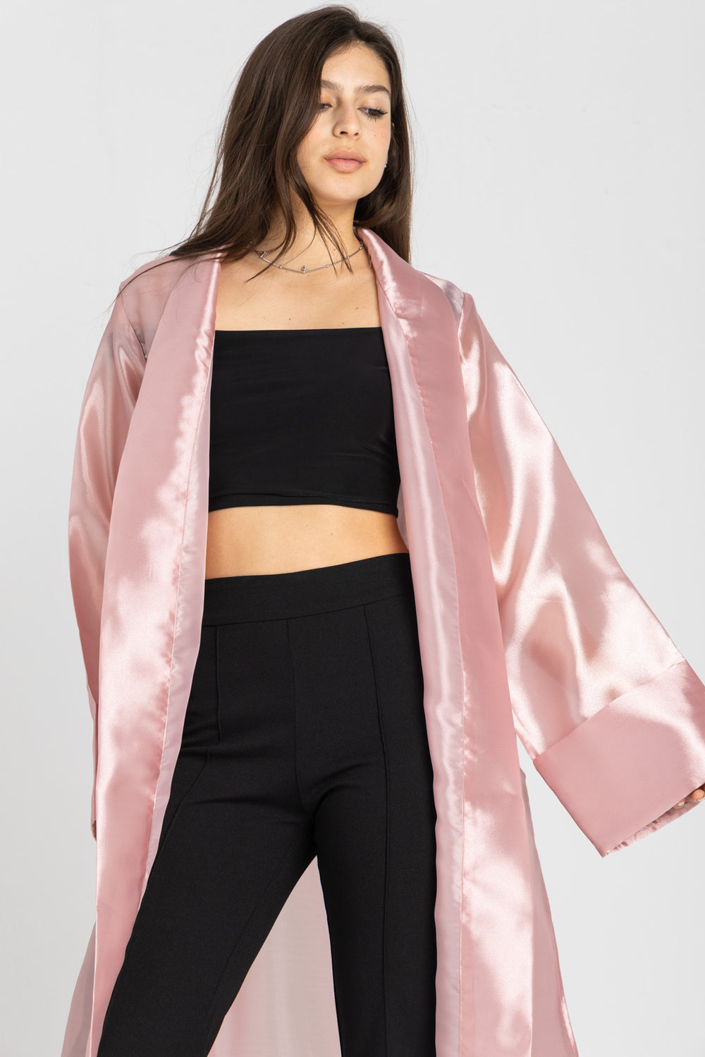 Crafted from delicate organza fabric with a subtle shimmer, this cardigan drapes beautifully and catches the light with every movement. The ethereal quality of organza adds a refined, sophisticated glow that complements any outfit, from casual daywear to evening ensembles.