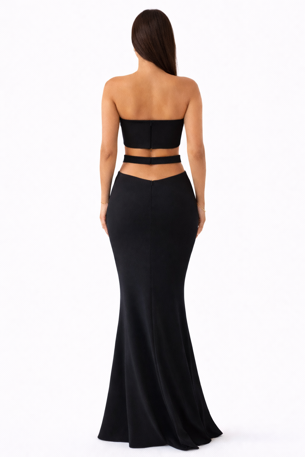 Is A sculpting summer maxi with striking cut-out detailing, designed for elevated coastal evenings and stylish party nights. Stretch fabric features a refined sandy outer texture with a smooth interior for a sleek, body-contouring fit. Effortlessly elegant, bold, and timeless for warm-weather nights.
