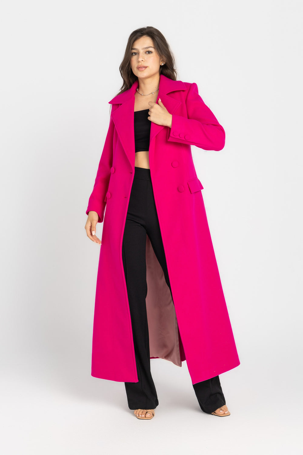 Crafted from dense, soft-touch felt that holds its structure beautifully, the Monarch is designed with authority in mind. Its long, uninterrupted silhouette elongates the body, while the sharply cinched waist defines your shape with clean, vertical precision. The result? A coat that looks as powerful as it feels.