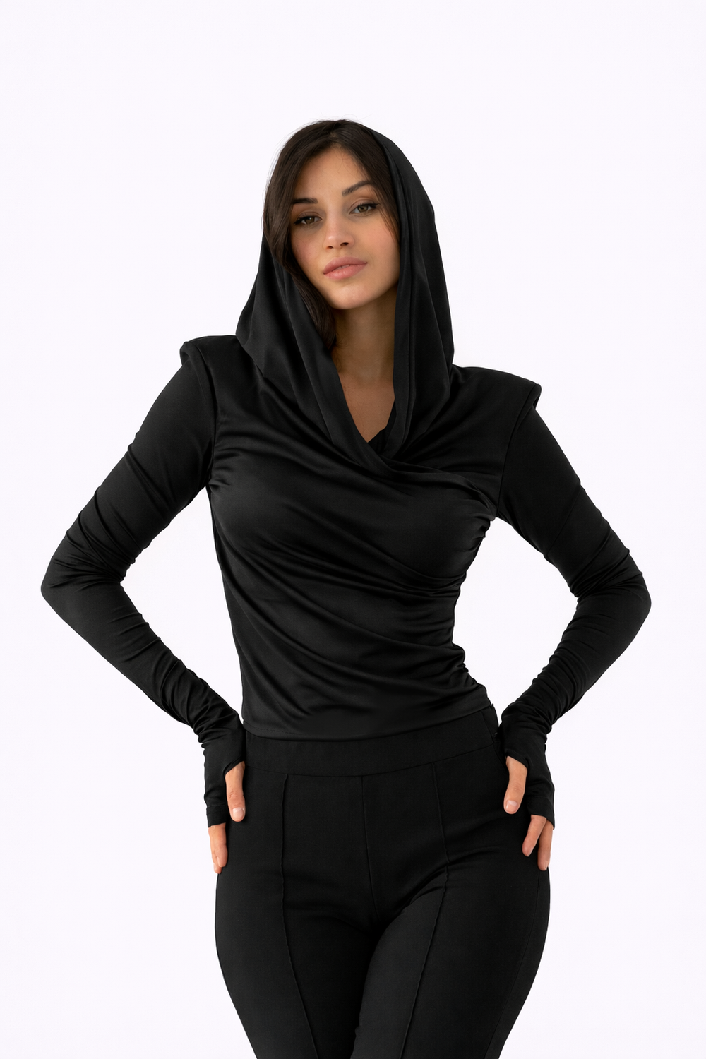 This black structured shoulder bodysuit is your wardrobe essential for creating powerful, polished looks. Crafted from premium stretch fabric that moves with you, it delivers a flattering, comfortable fit that hugs your curves beautifully. The distinctive shoulder padding creates a statement silhouette while enhancing your natural shape for a sleek, editorial aesthetic.